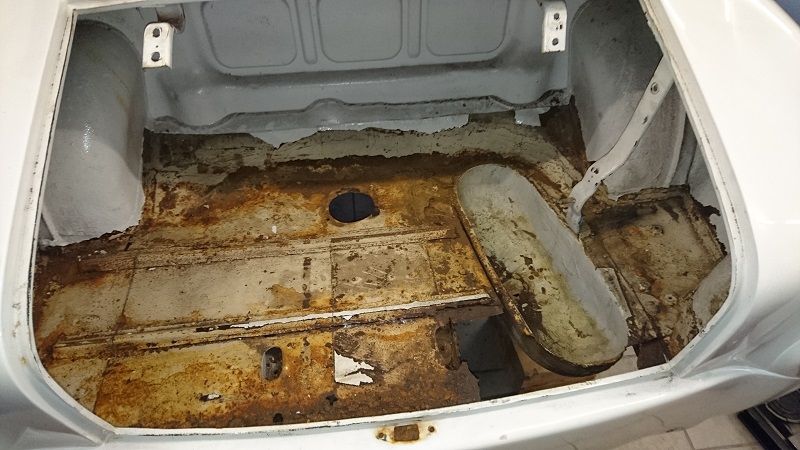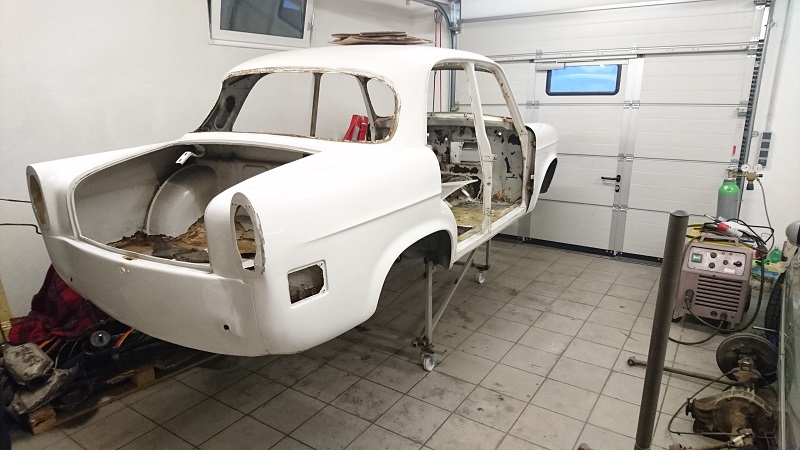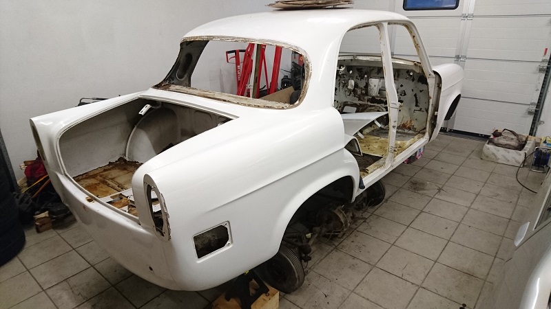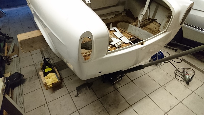 So.. die Karrosse ist demontiert. Türen wurden alle entfernt, Heckdeckel und Motorhaube ebenfalls von allen Kleinteilen befreit.