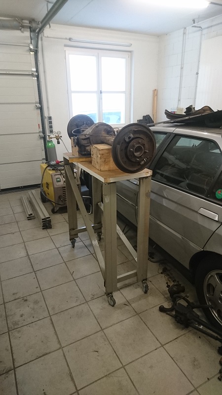 Ich muss zugeben mit Schweissgerät sieht die Welt gleich anders aus. Kurzerhand ein neuen Wagen gebrutzelt um das Getriebe auf Augenhöhe zu bearbeiten.
