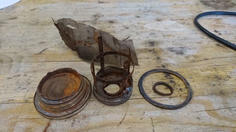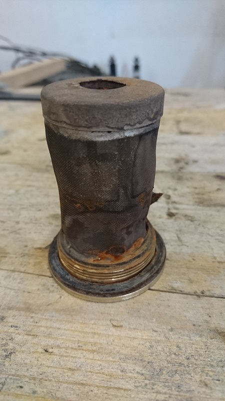 Der Benzinfilter hatte auch schon bessere Tage. Die Stützen unter dem Netz sind verrostet.